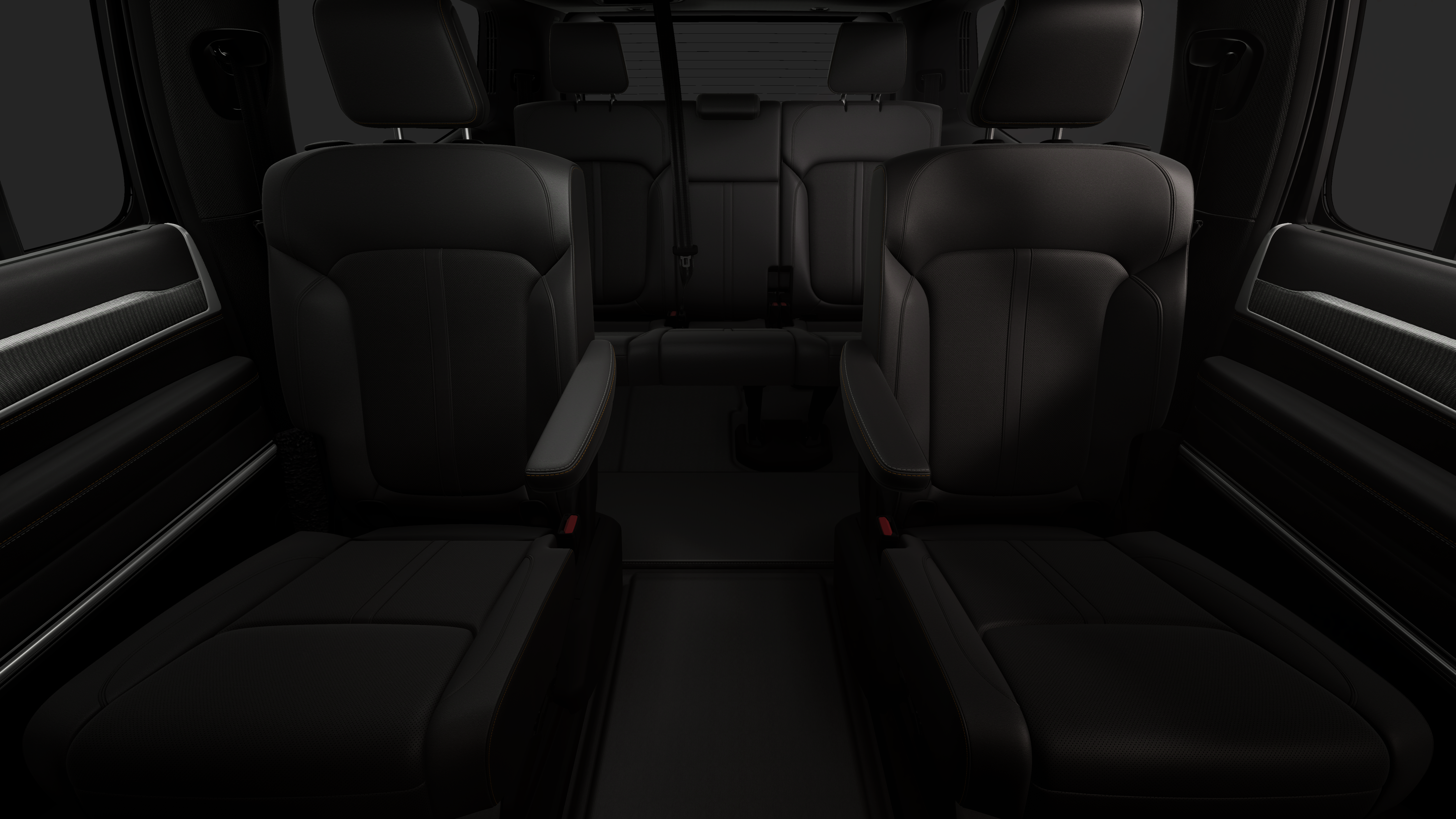 • Fixed 60-40 Bench Leather 3rd Row Seat Front, Power Recline, 3 Power and Adjustable Head Restraints