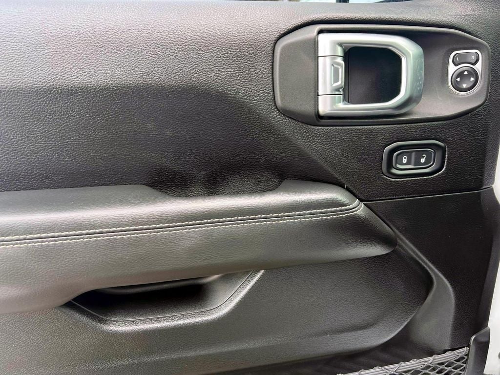 The Wrangler Unlimited Sahara's striking white exterior is complemented by a premium leather-trimmed interior, ensuring both style and comfort. Enjoy the convenience of features like GPS navigation, a premium audio system, and advanced safety technologies like Blind Spot & Cross Path Detection.